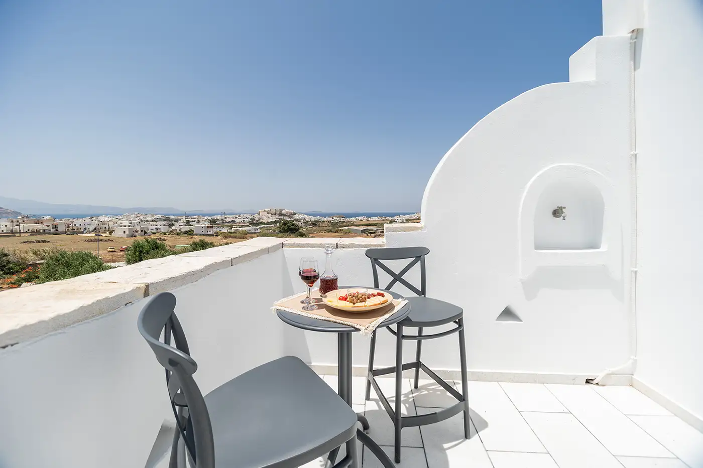 Welcome to our cosy Helios Beam House at Disis Residence in Naxos, where unparalleled views and utmost comfort await you. Perched atop a scenic vantage point, this exquisite accommodation boasts breathtaking vistas of Naxos Island from its spacious balcony and private garden.